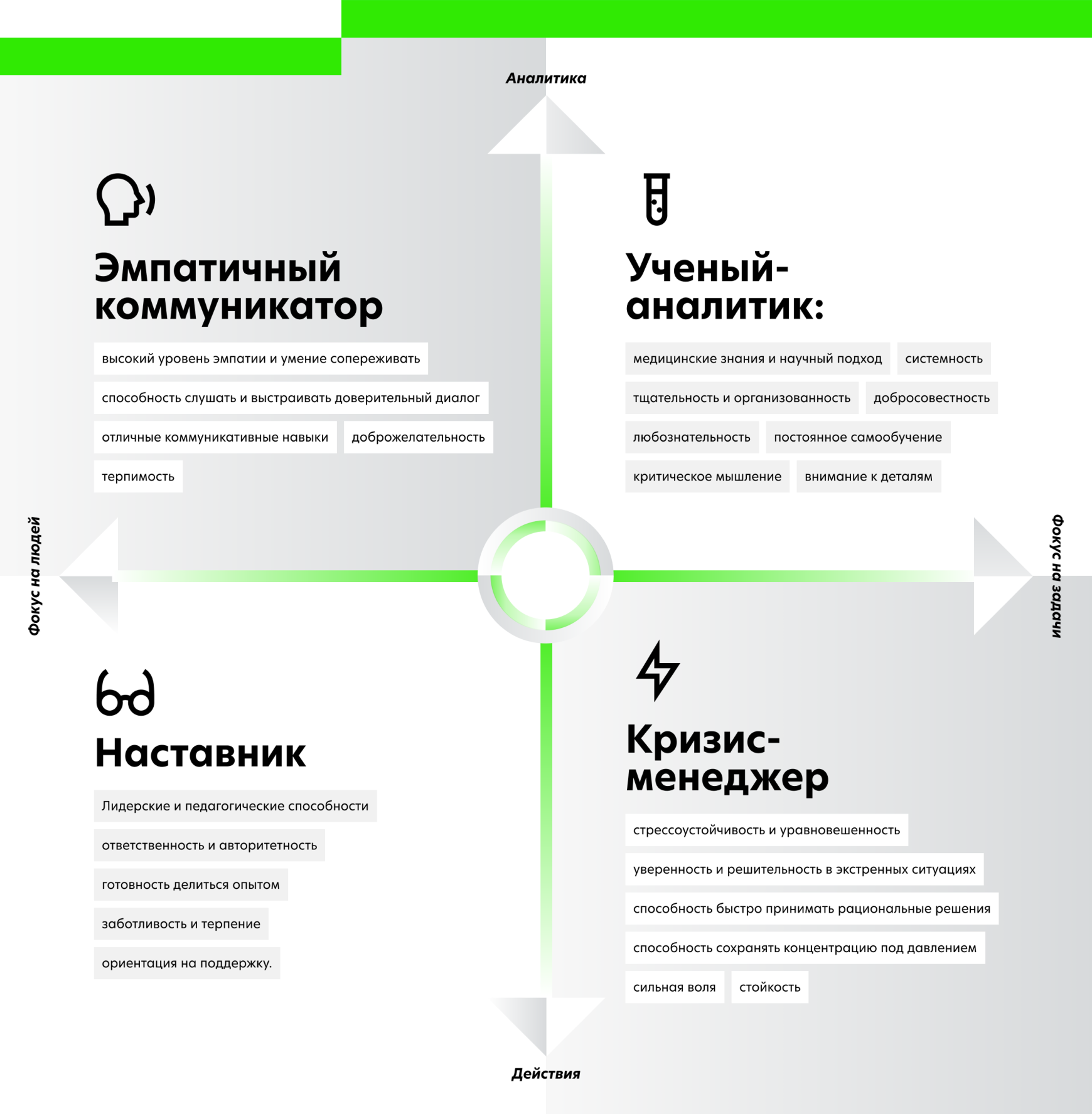 На основе данных опросов и исследований мы выделили четыре «субличности» врача — расскажем о каждой из них. Для начала предлагаем пройти тест, чтобы в конце статьи узнать, какая субличность в вас сегодня сильнее.