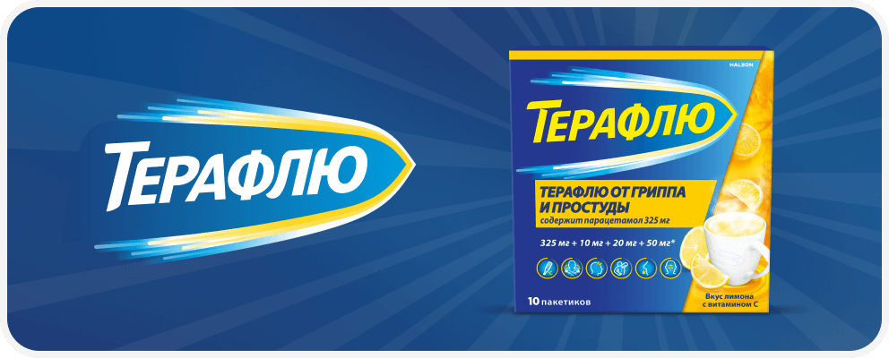 Горячий напиток ТераФлю Экстра содержит 650 мг парацетамола: этого достаточно для снижения температуры. Теплый раствор поможет согреться и восполнить потерю жидкости.15
